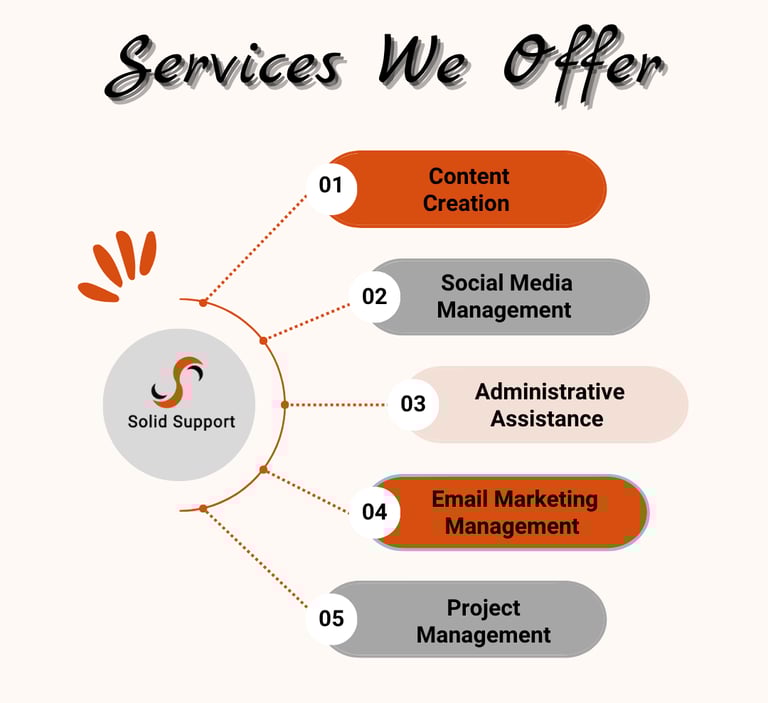 Comprehensive administrative, marketing, and project management services tailored for your business needs.